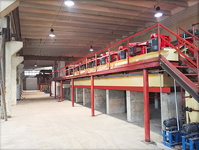 該項目為后續3000t/d工程的半工業試驗場地,白鎢采用重選和浮選兩種選別方法,螢石采用浮選回收。通過半工業試驗的成果確定3000t/d選廠的工藝流程。