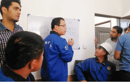 為了讓客戶的選廠盡早投入生產(chǎn),并擁有穩(wěn)定的技術(shù)團(tuán)隊(duì), 保障日后礦山的正常運(yùn)營,金鵬會委派安裝調(diào)試團(tuán)隊(duì)中的技術(shù) 骨干來負(fù)責(zé)培訓(xùn),這些經(jīng)驗(yàn)豐富的 工程師們將對所有選礦設(shè)備、選礦工藝在選廠運(yùn)營中的常見問 題進(jìn)行培訓(xùn),為工人現(xiàn)場演示解決方法。